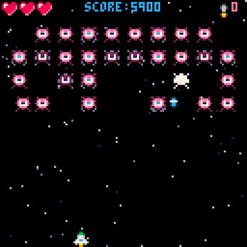 This was a school project made using the "Pico-8 Tutorial - Shmup" series from Lazy Devs on Youtube. It's a simple, arcade-style shoot 'em up with simple, yet engaging gameplay.